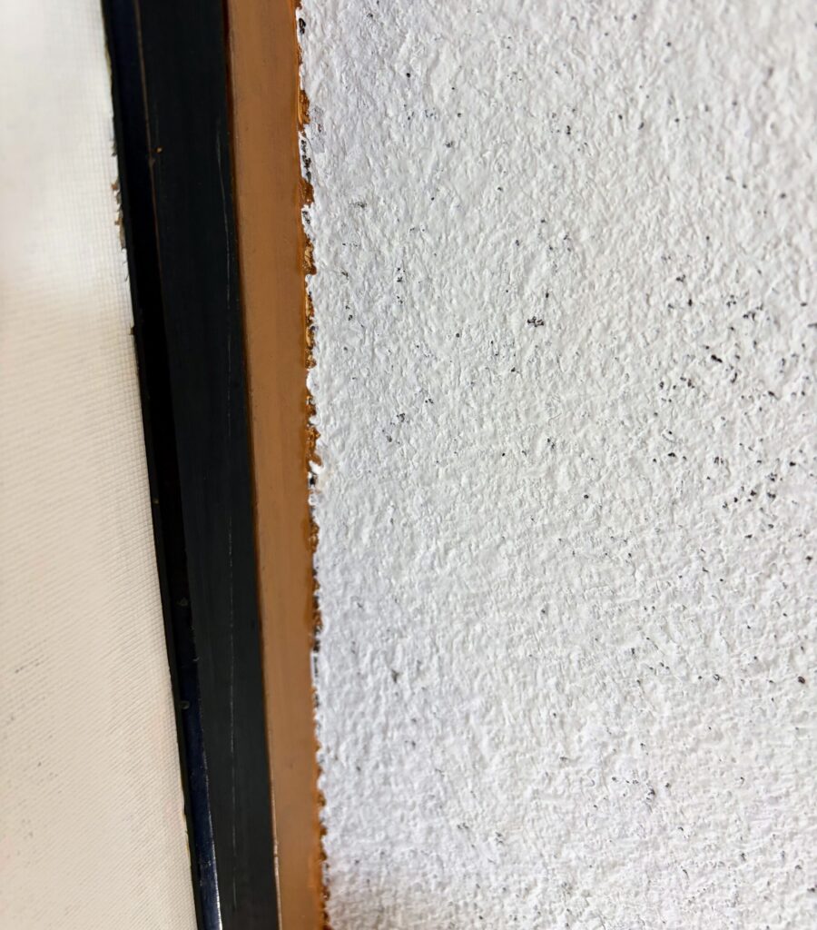 繊維壁は、前回の砂壁同様、凸凹で完全にマスキングできません。