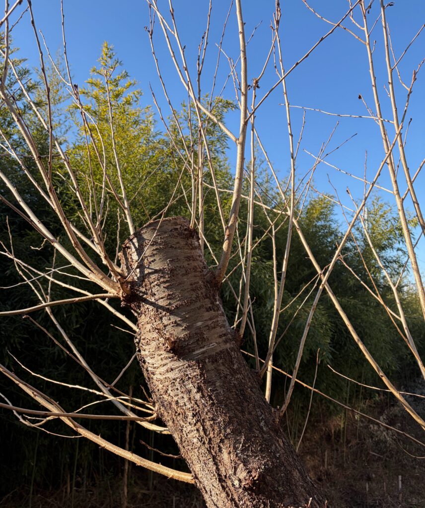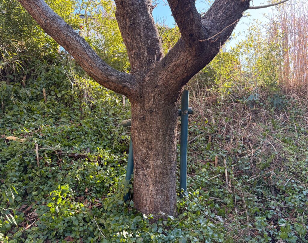 右側は別の土地になるで枝を切ってます。