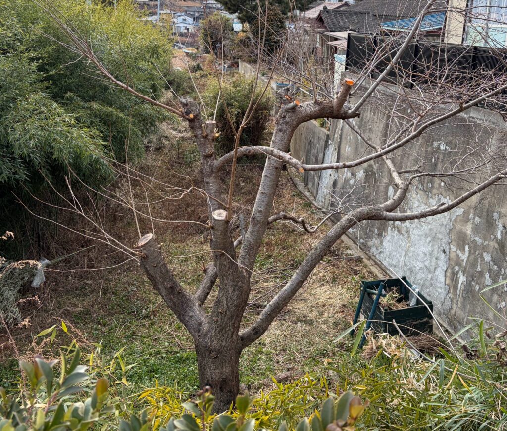 それで、桜は枝がたくさん出てくるので年に1回、冬場に剪定をしています。
